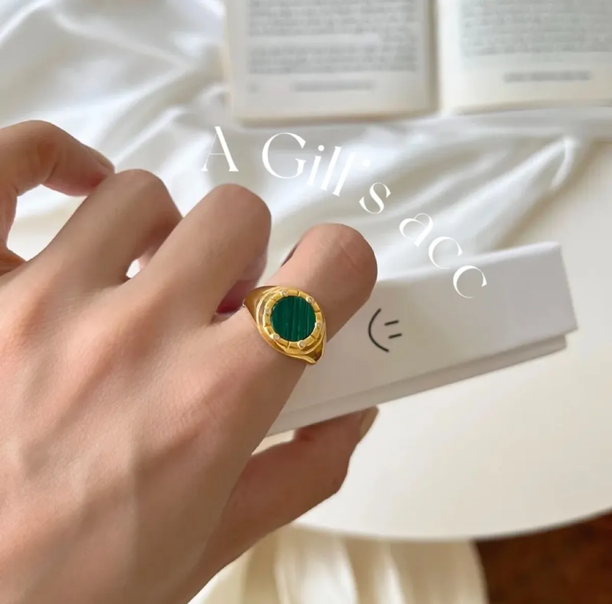 金手指 歐美金色綠石戒指